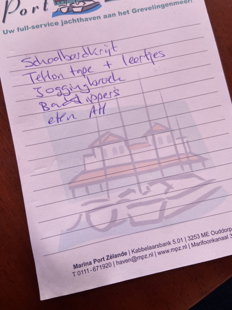 *) Bijna vaarklaar – goede herinnering dat op een boot die soms schuin gaat álle kastjes op slot moeten…