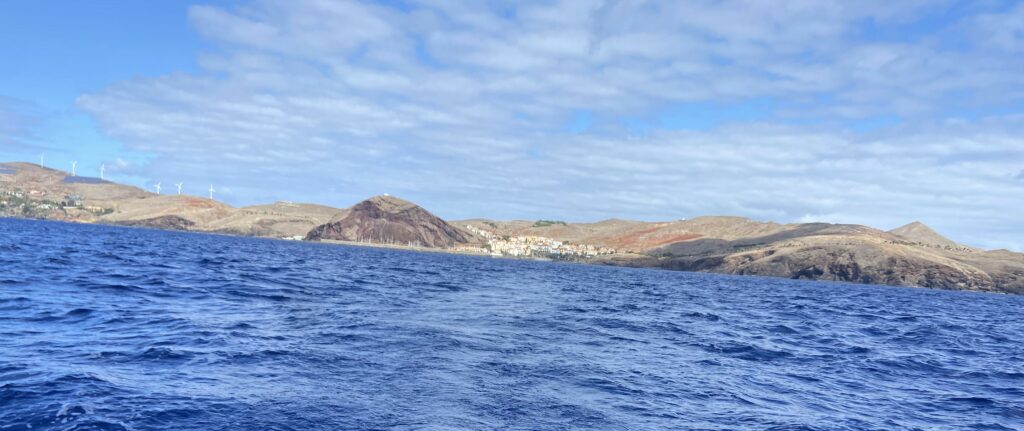 Een laatste blik op dit mooie eiland in het blauwe water. Dan varen we langs de Islas Desertas (waar dus niemand is om ons uit te zwaaien) en zijn we op weg naar Tenerife.