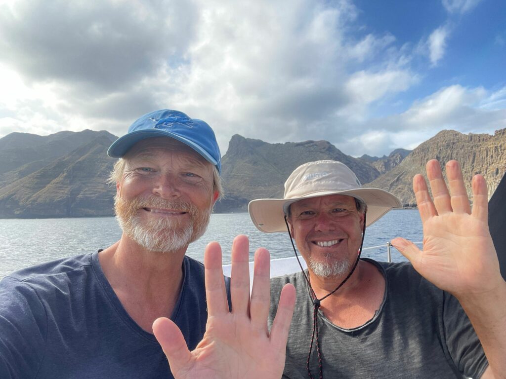 Tegen het zeilers(bij)geloof in besluiten we te vertrekken op een vrijdag. Het is tenslotte een vrijdag de 13e! Om een uur of 2 in de middag gooien we de trossen los en zwaaien we vaarwel & tot ziens naar Tenerife. Het is inderdaad windstil en we vertrekken op de motor. Dat zal het komende etmaal wel zo blijven.