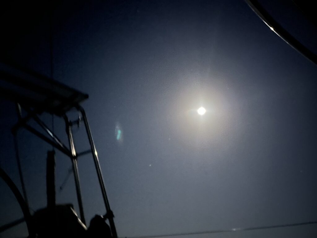 Zo achteraf beschreven lopen de dagen en gebeurtenissen wat in elkaar over en hebben Fred en ik ook niet precies dezelfde herinneringen. Maar het wordt een tocht met van alles wat. Prachtige zonsondergangen, volle maan, geen wind en een heldere hemel in de eerste nacht, geen wind maar een dicht wolkendek dat opeens ophoudt. Dit levert mooie plaatjes op: