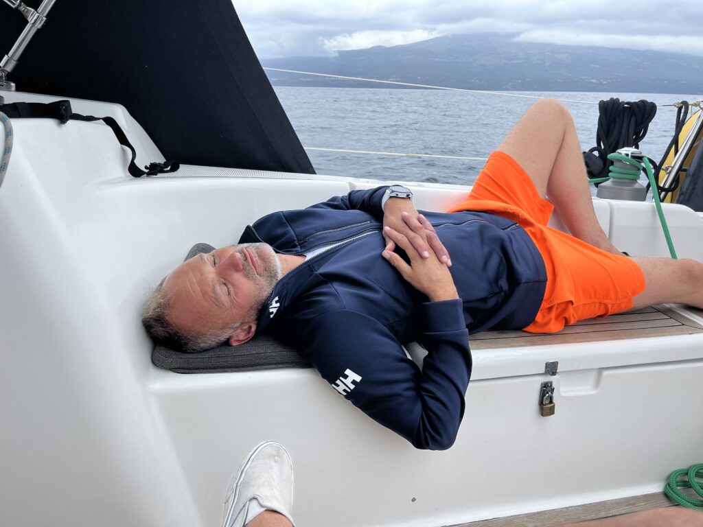 Vanmorgen uitgevaren nadat we de huurauto hebben ingeleverd en het havengeld hebben betaald, op naar São Jorge, een afstand van ca. 22 mijl,  een tocht van ongeveer 4,5 uur. We zijn vertrokken om 10:30 uur en kwamen op Porto Das Velas aan om 15:30 uur. Onze eerste kleine zeiltocht was erg lekker rustig genieten, van de rust, van de zee, en van de ontspanning.